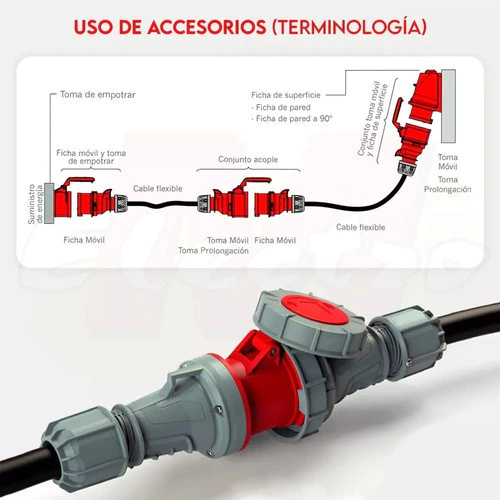 MODELO: CX-015L CODIGO: 21151240 MARCA: CONEXTUBE CANT. PATAS: 3 POLOS + TIERRA + NEUTRO (5 PATAS) CORRIENTE NOMINAL: 16A COLOR ROJO MACHO 415V