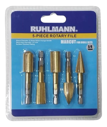 Kit de Limas fresas rotativas para madera y plastico Marca: Ruhlmann Codigo: RU8525 Cantidad por Pack: 5 Piezas